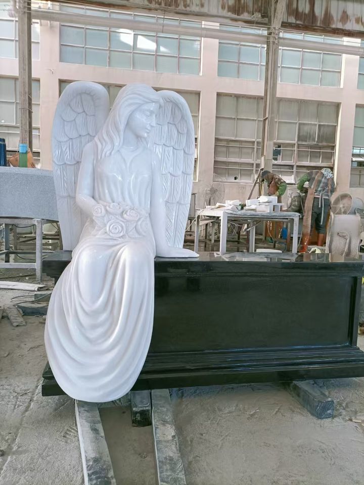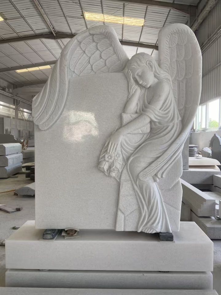 Chine prix d'usine conception personnalisée marbre blanc ange Statues pierre tombale et Monument Style européen granit pierre tombale pour tombe