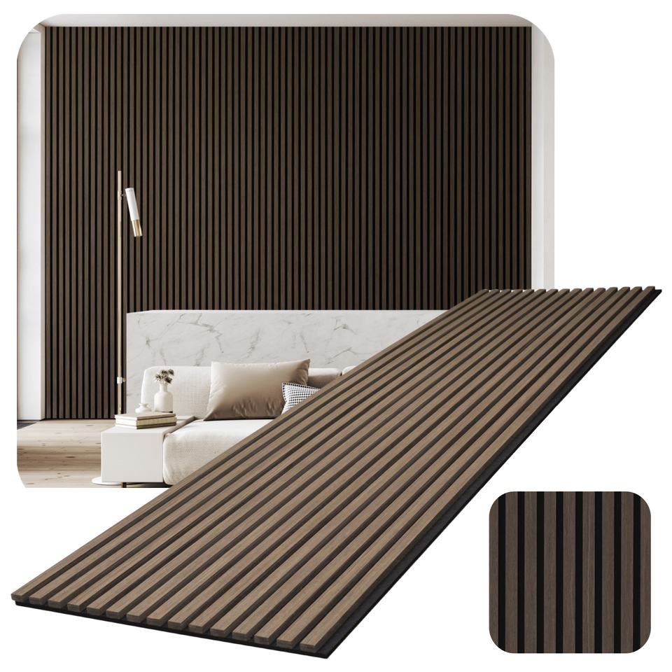 Nom du produit:Panneaux muraux en bois à lattes acoustiques en chêne fumé avec support en feutre PET