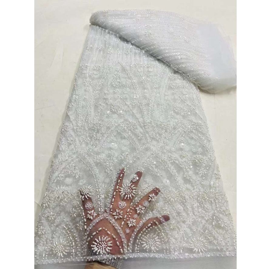 Chine prix usine jaune paillettes dentelle tissu ou Standard prix raisonnable tissu perlé à la main africain Aso Ebi