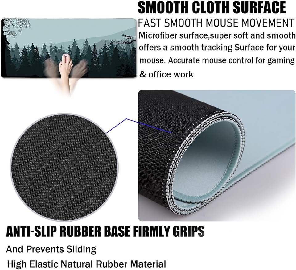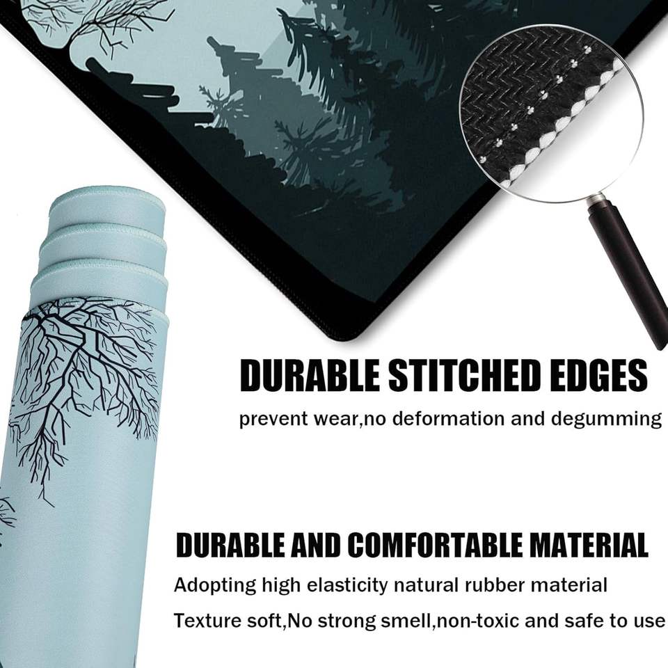 Tapis de souris XXL surdimensionné à motif floral personnalisé, imperméable, antidérapant, avec bordure renforcée