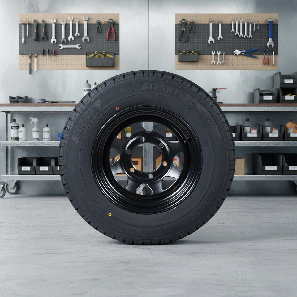 Roue en acier d'usine chinoise, pneu radial de remorque de haute qualité 185R14C, prix compétitif, caoutchouc naturel, certifié DOT, 12 mois