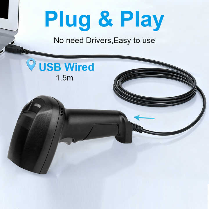 Lecteur de codes-barres et QR codes filaire USB, appareil portable pour supermarchés et systèmes de point de vente (PDV) – Vente en gros directe usine Chine