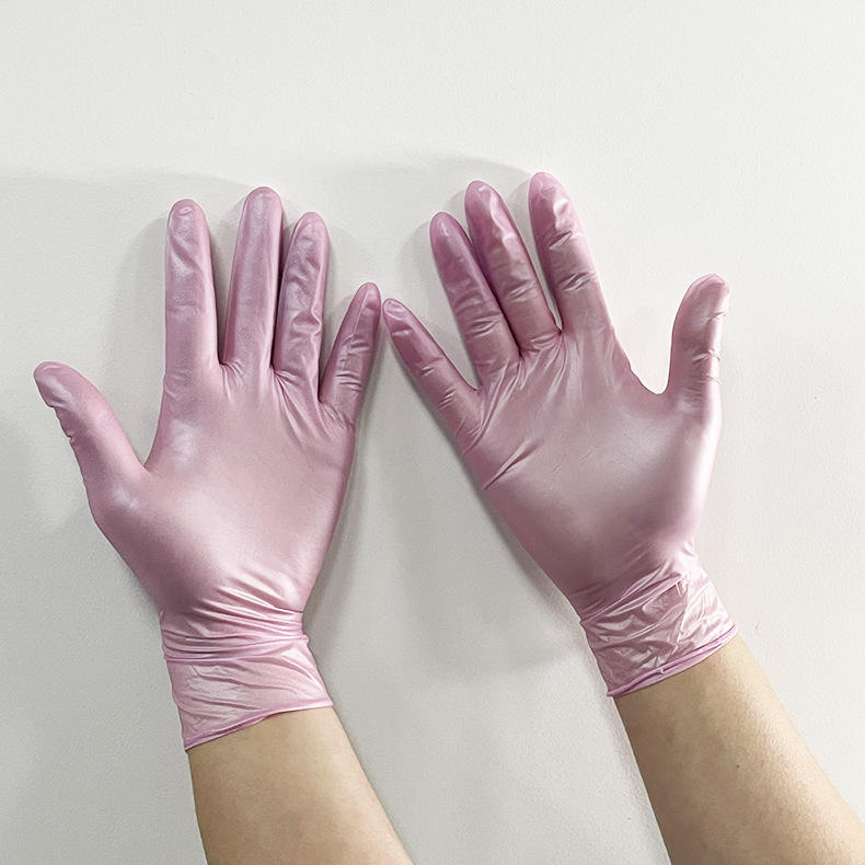 Chine Échantillon Gratuit Vente en Gros Pas Cher Vinyle Rose Perle Gants En Nitrile Sans Protection En Poudre Bleu Pvc Gants En Nitrile
