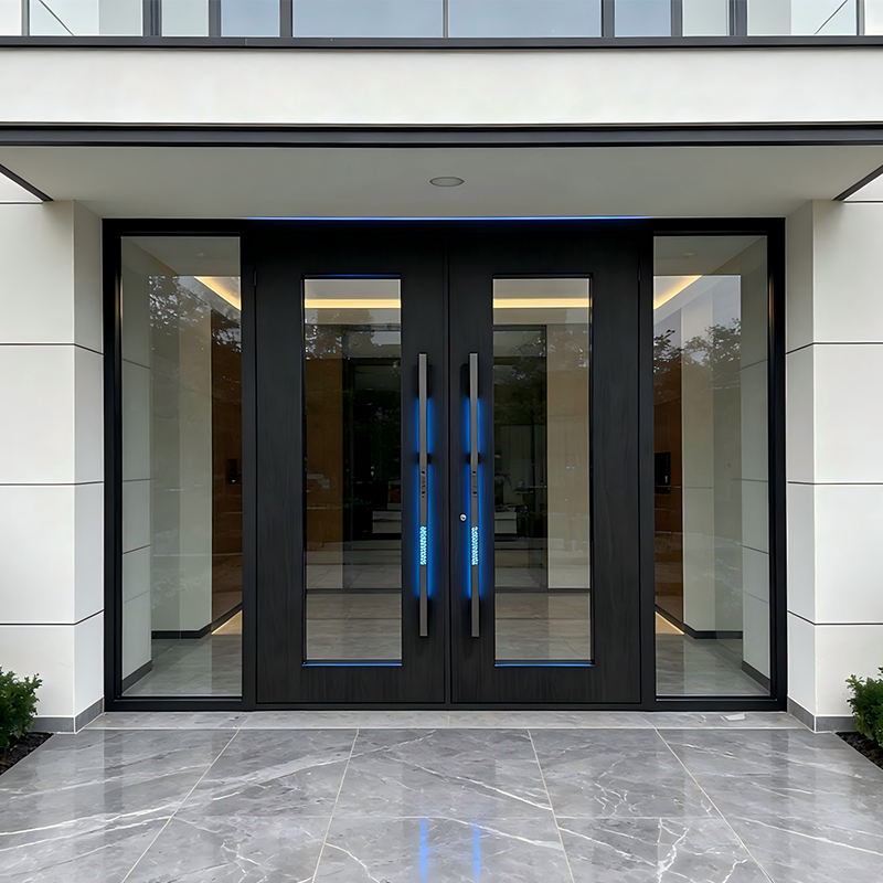 Portes d'entrée pivotantes haut de gamme chinoises en aluminium et acier pour maison