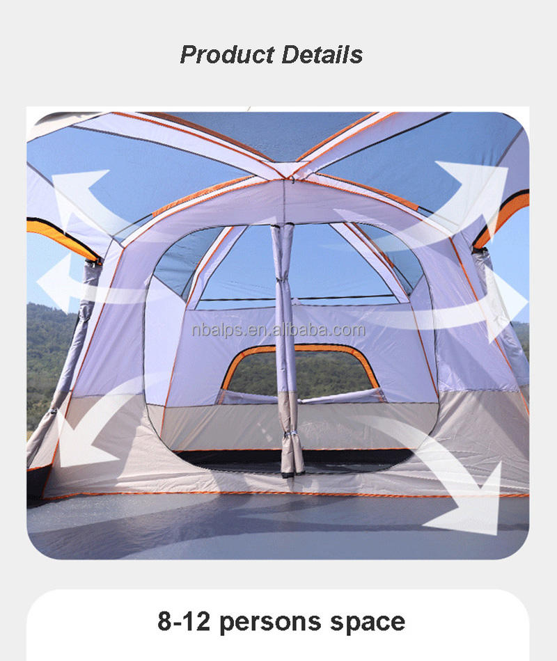 Chine grand 8 couchettes 12 personnes grand extérieur étanche 2 3 pièces camping tente familiale