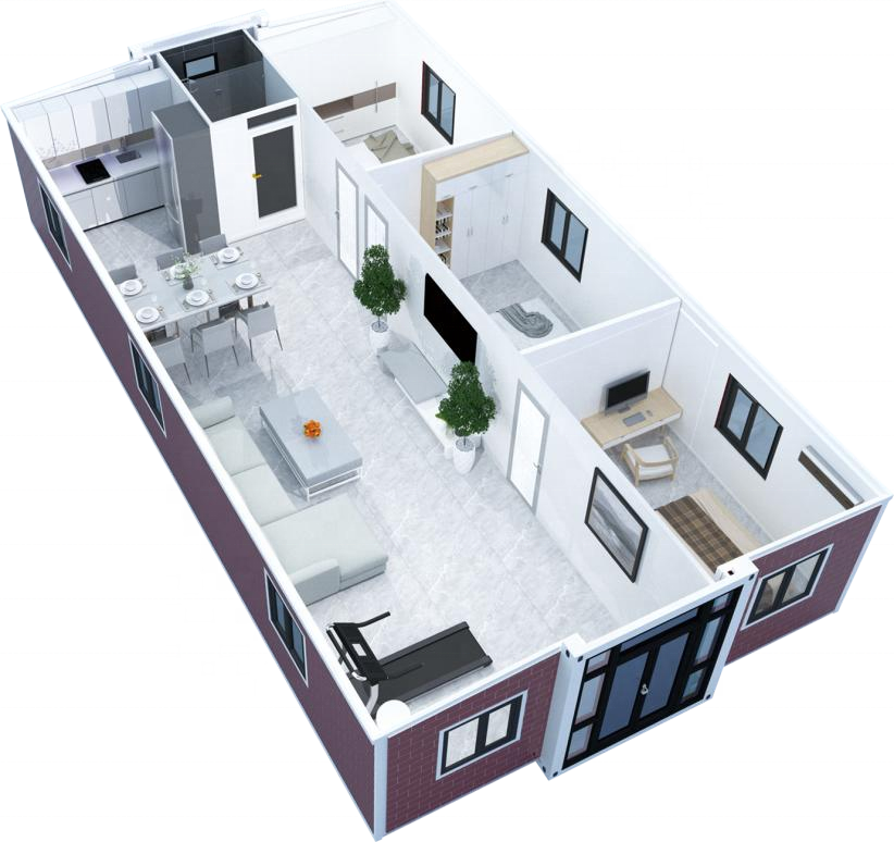 Maison de conteneur, Maison vivante de conteneur, Cuisine, Salle de bain, Bureau à la maison, Salon, ChambreApplication