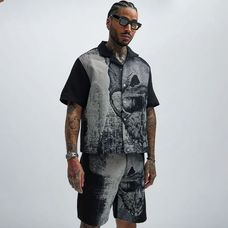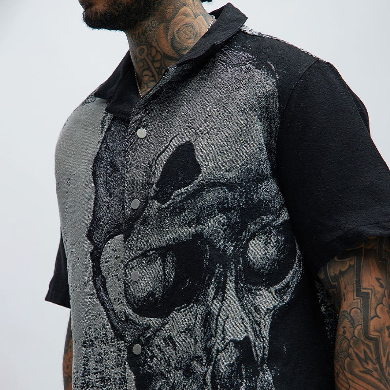 Chine Fabrication Conception personnalisée Multi Couleur Noir Blanc Bouton Lithg Poids Jacquard Tissé Tapisserie Hommes Veste Chemises