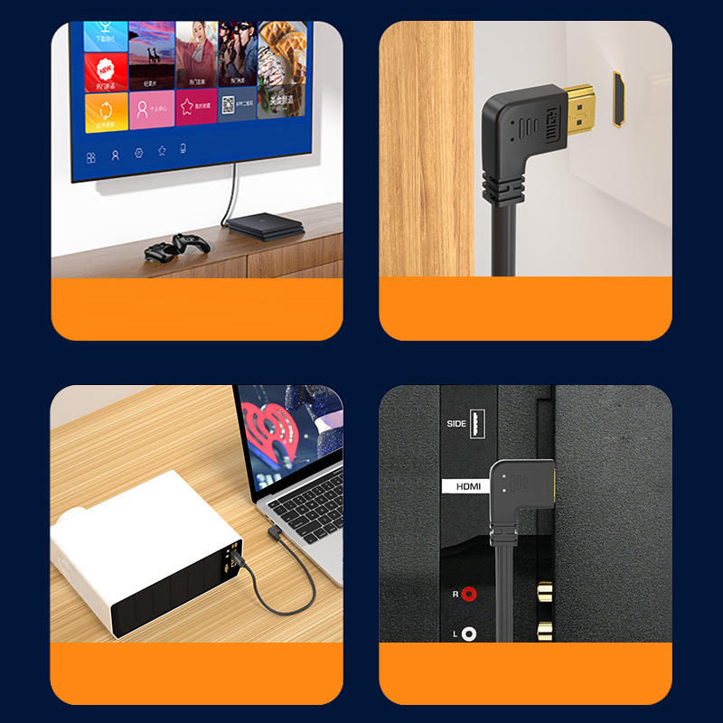 China Manufacturer High Quality 24k Gold Plated 4k Ultra Hd Elbow Right Male to Male 90 Degree Elbow Certificated Hdmi Cable