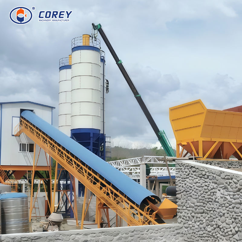 Corey China Manufacturer Professional Price HZS120 PLC Controlled Cement Silo 120m/h Capacity Concrete Production Line 2-Year