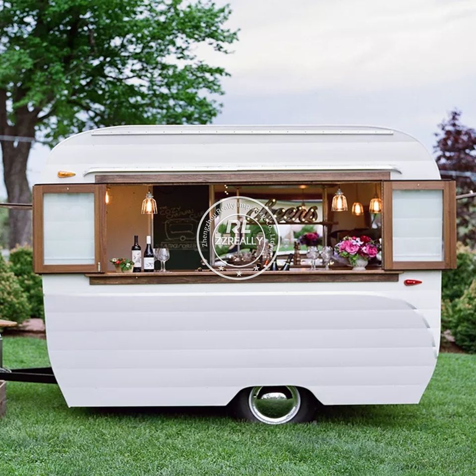 Chariot multifonctionnel remorquable en fibre de verre et aluminium pour glaces, fruits, beignets, bonbons et hot-dogs, idéal pour l'extérieur - Fabriqué en Chine