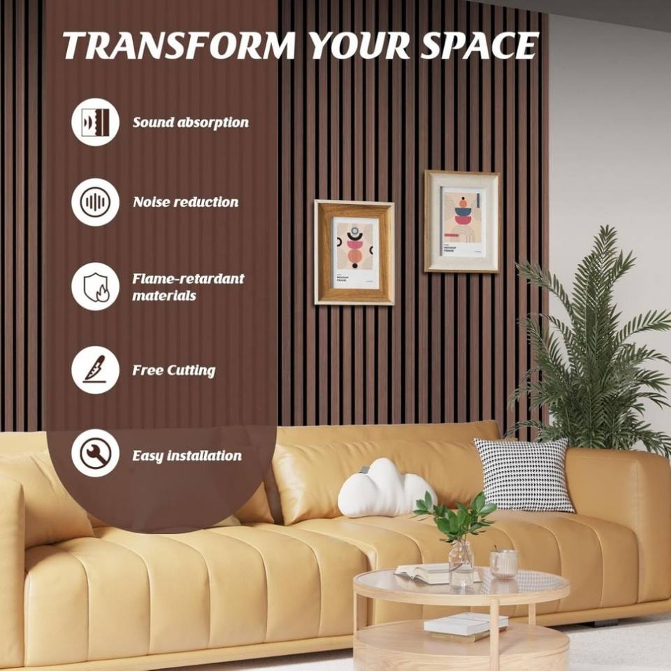 Nom du produit d'échantillon:Panneaux acoustiques muraux insonorisants en fibre de polyester et lattes de bois.