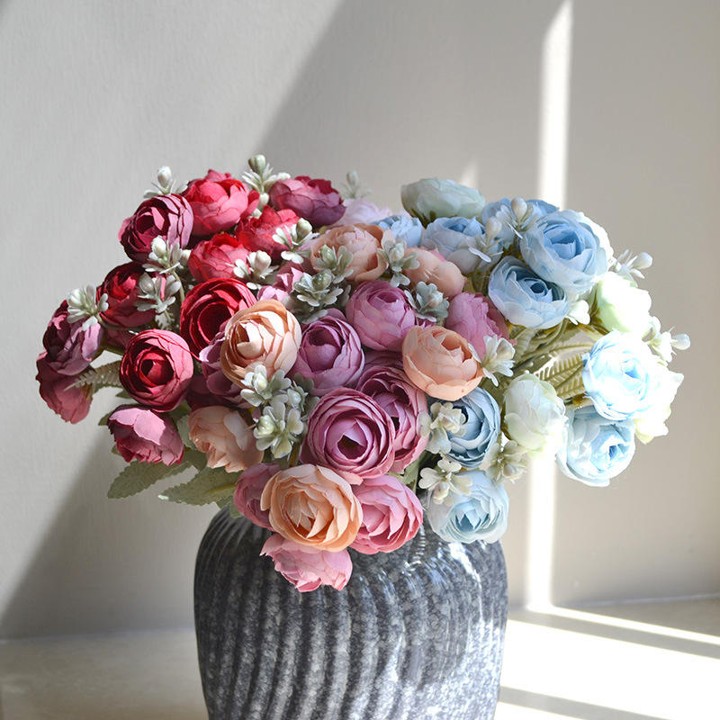 Bouquet de fleurs artificielles en soie réaliste de 18 têtes de renoncules, vente en gros en Chine, pour la décoration de la maison, de la table de mariage