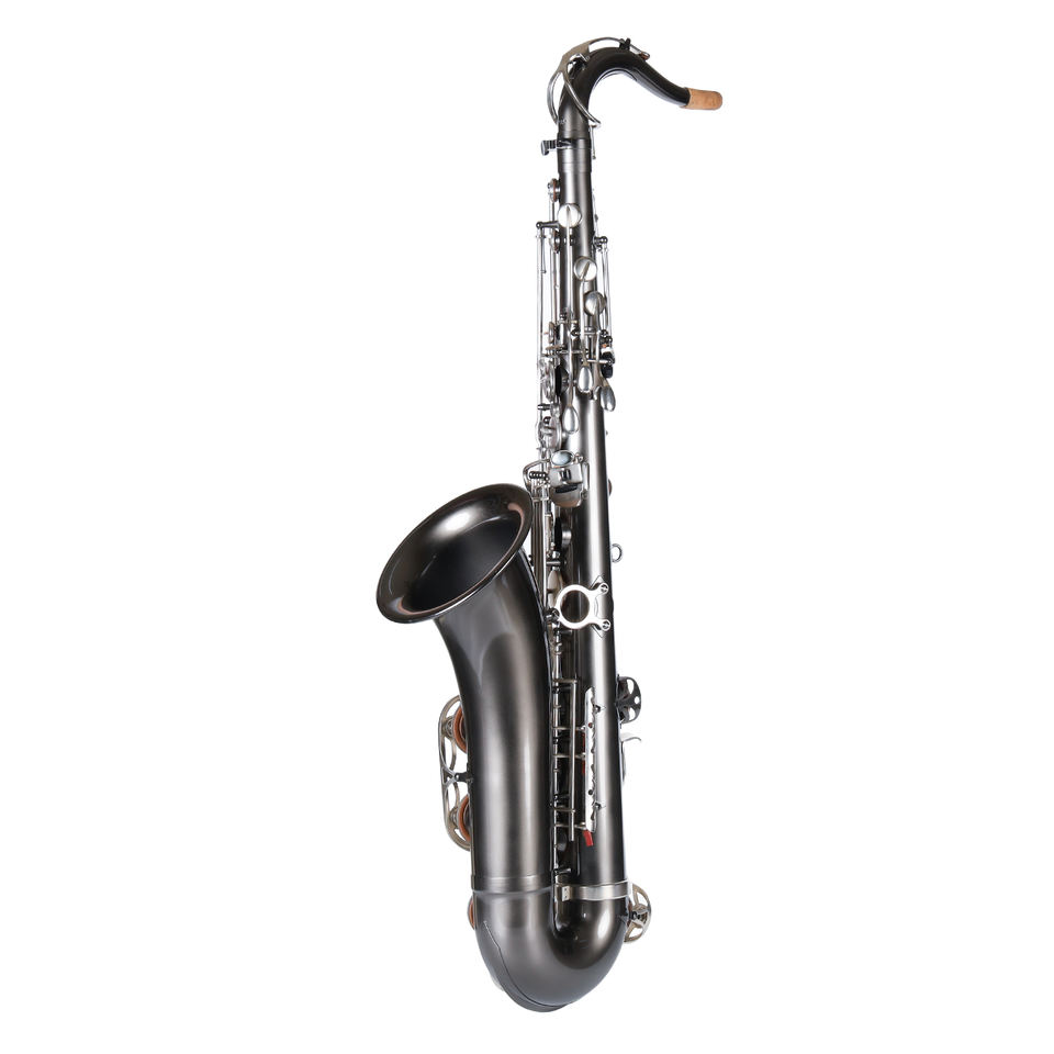 Saxophone Ténor Noir de Haute Qualité en Cuivre Blanc à Structure Classique avec Double Renfort, Tonalité Bb, Vente en Gros Chine