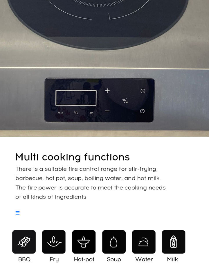 Soupe ragoût, Ragoût, Faire sauter volant, Vapeur & brouillir, Cuisson de porridge, Faire sauter, Ragoût au lait, Bouillissage d'eau, Frire, Réglage de la température, Ragoût à feux doux, Intense feu
