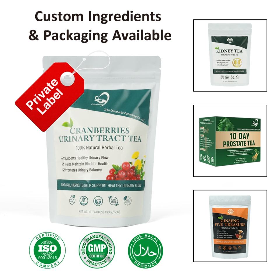 Thé Chinaherbs aux canneberges pour la santé des voies urinaires et de la prostate pour hommes, 16 sachets (3,5 g chacun), végétalien, sans OGM, sans gluten