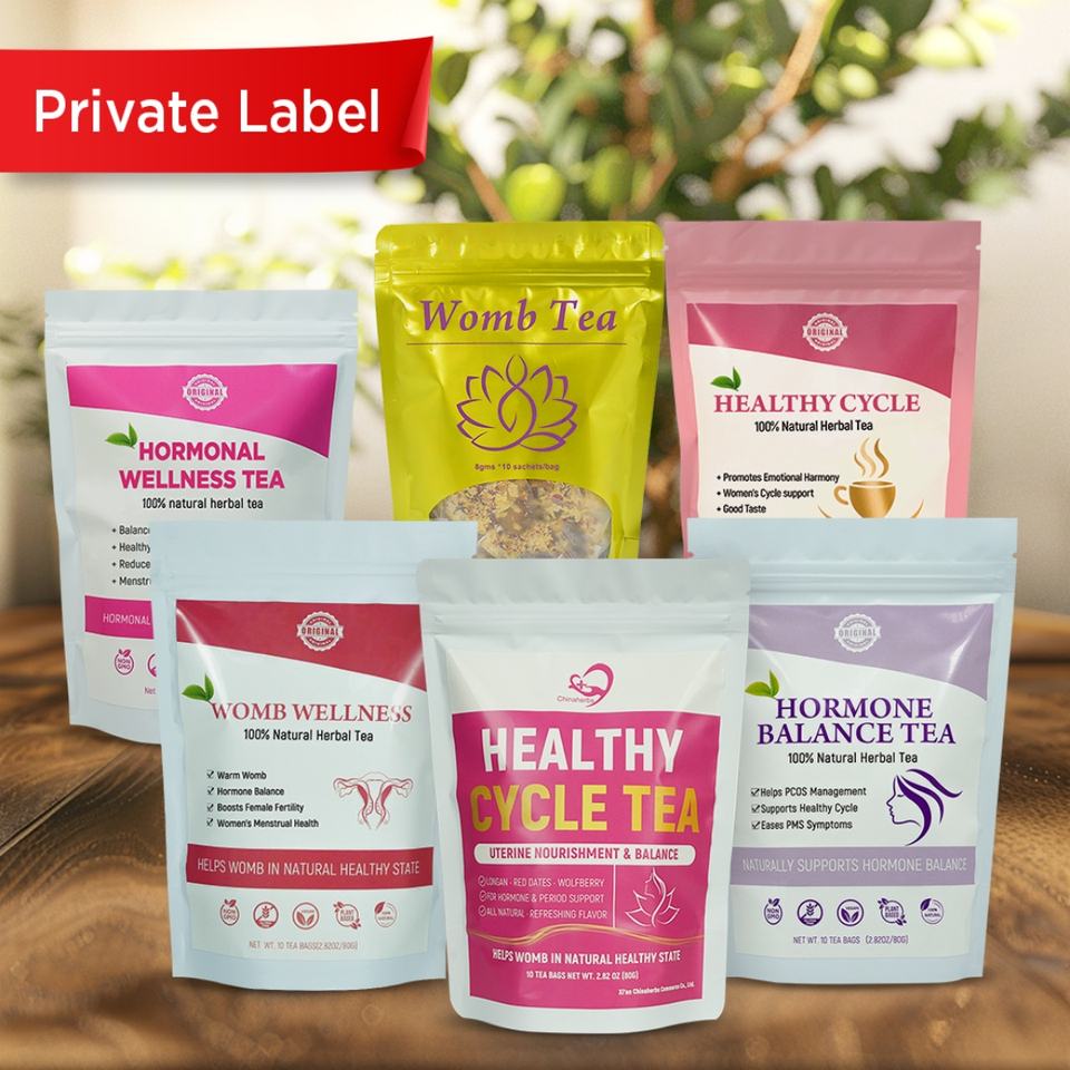 Thé aux herbes personnalisé à marque privée Chinaherbs, thé pour les règles, 8g*10 sachets, thé sain pour le cycle féminin, équilibre hormonal, sachets de thé pour l'utérus