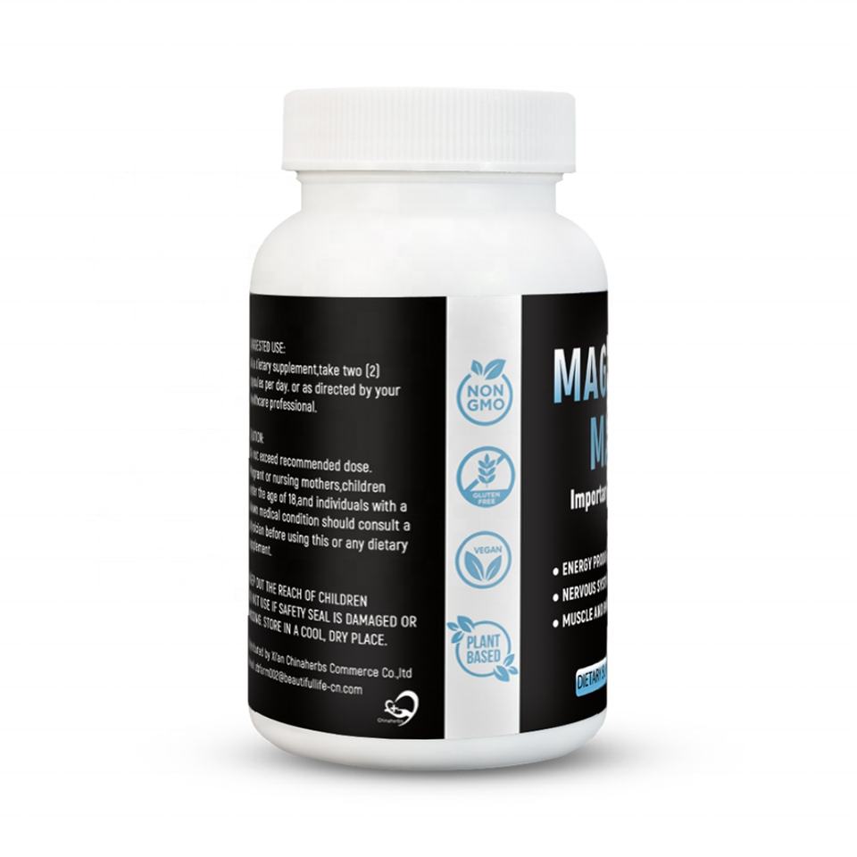 Capsules de poudre de magnésium Chinaherbs en marque privée, 60 capsules, développement cérébral, sommeil de haute qualité et activation de la vitalité