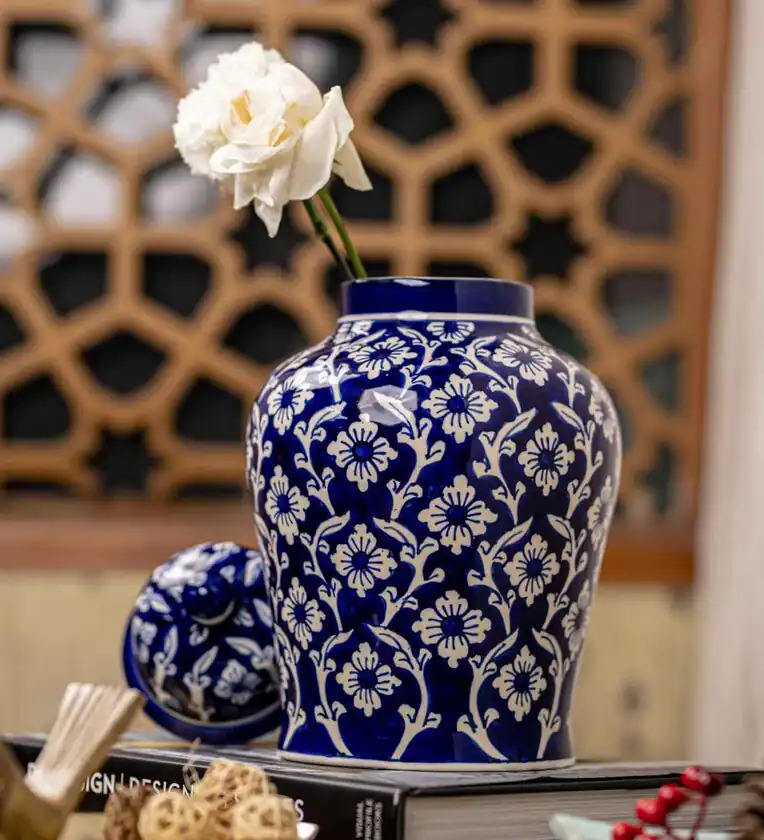 Style Antique chinois fait à la main luxe de haute qualité bleu et blanc en céramique Vase à fleurs Design pour la décoration intérieure