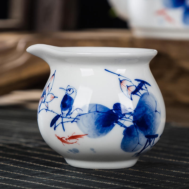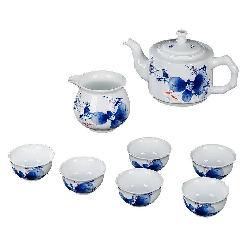 Chinese Artistic Tea Ware Set - Blue and White Porcelain Cups with Wooden Gift Box Perfect for Housewarming