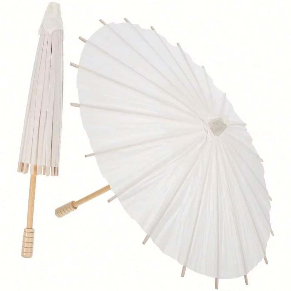 Parapluies en papier rustiques DIY chinois avec manche en bois sculpté pour accessoires de photographie, idéal pour baby shower, mariage, ou comme idées cadeaux blancs