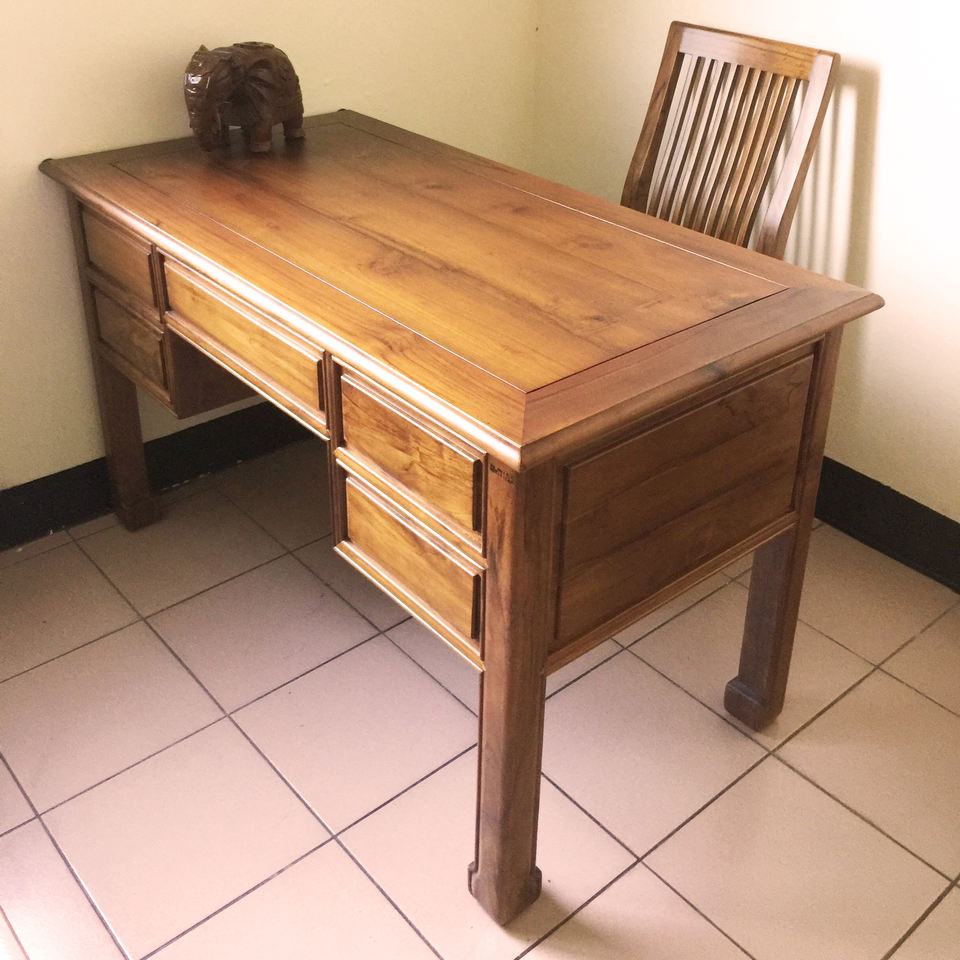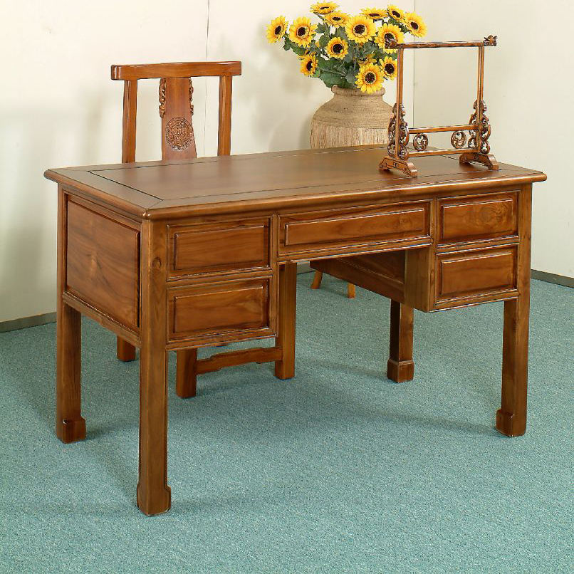 Bureau de direction modulaire en teck antique de conception chinoise avec 5 tiroirs pour usage commercial