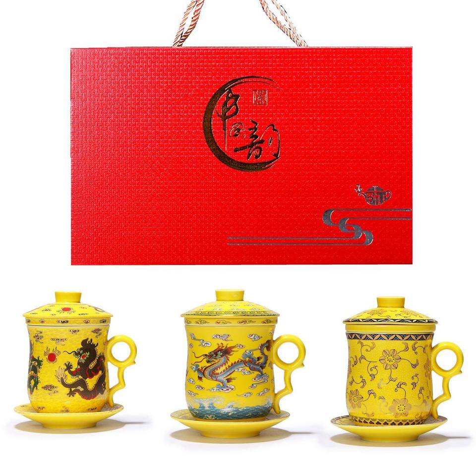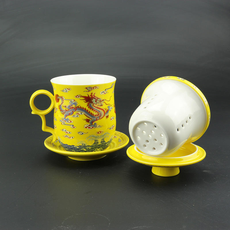 Tasse à café en céramique Dragon chinois tasse à thé en vrac thé brassage pour bureau tasse à thé en céramique avec couvercle et soucoupe infuseur ensembles