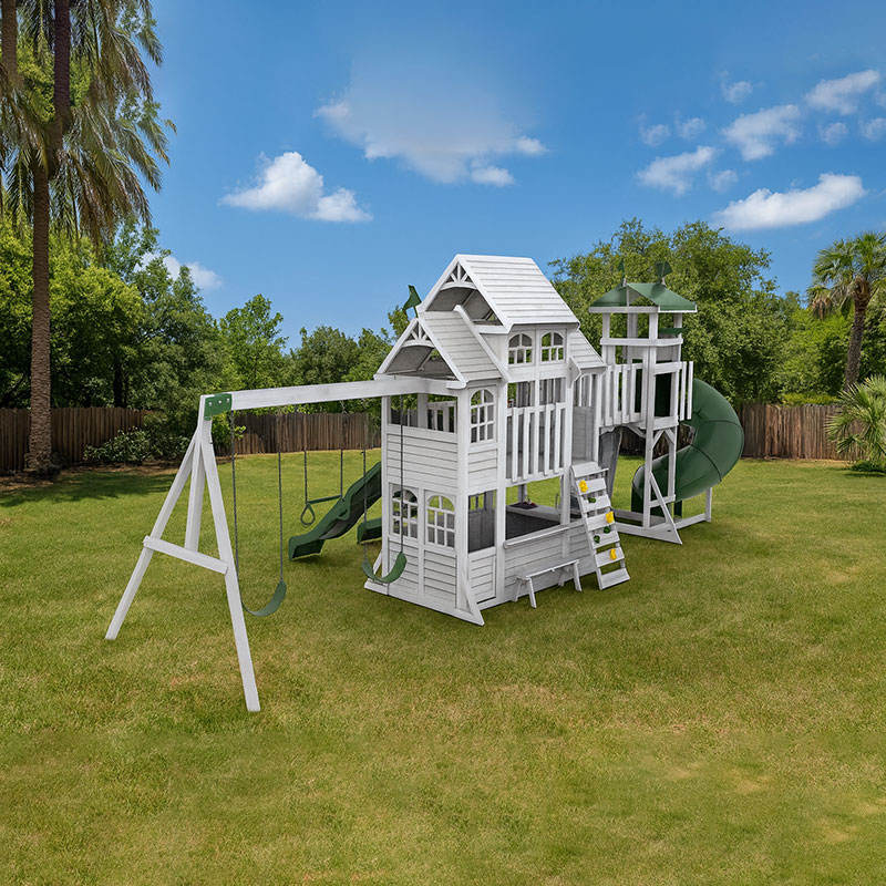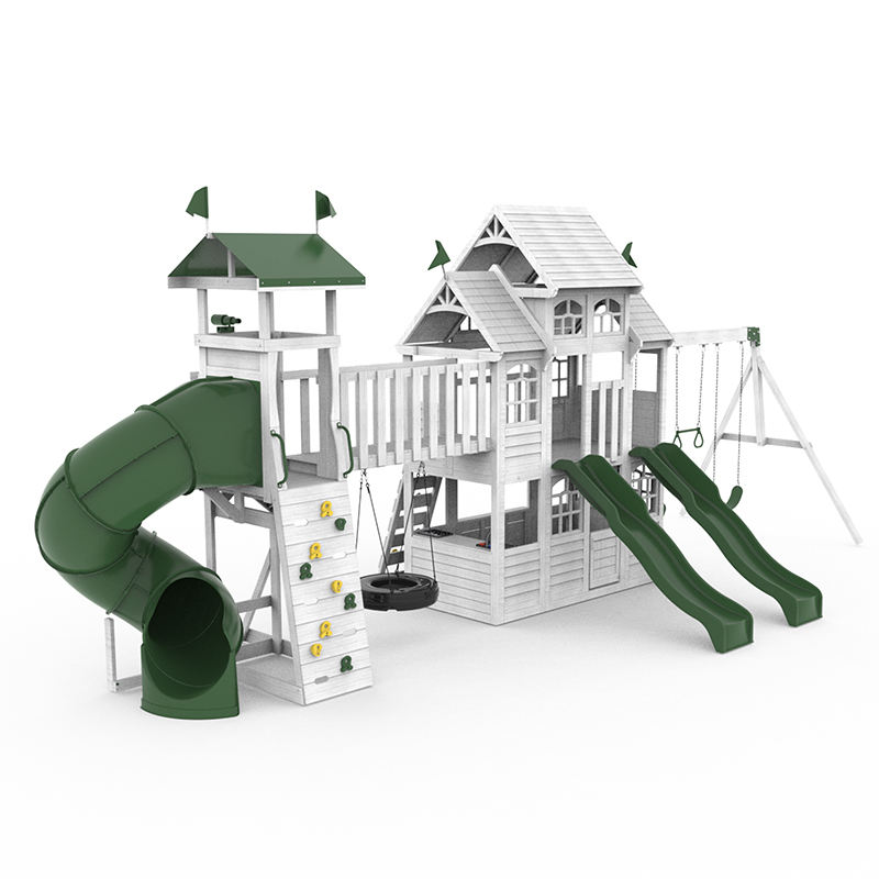 Usine chinoise de vente directe Maison en bois d'extérieur avec balançoire toboggan barres de singe mur d'escalade Ensemble - Équipement d'amusement d'extérieur OEM/ODM