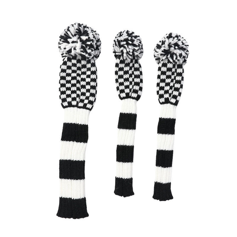 Housse de club de golf en tricot imperméable à motif damier avec pompon, pour driver et fairway wood, fermeture élastique, prix usine chinois