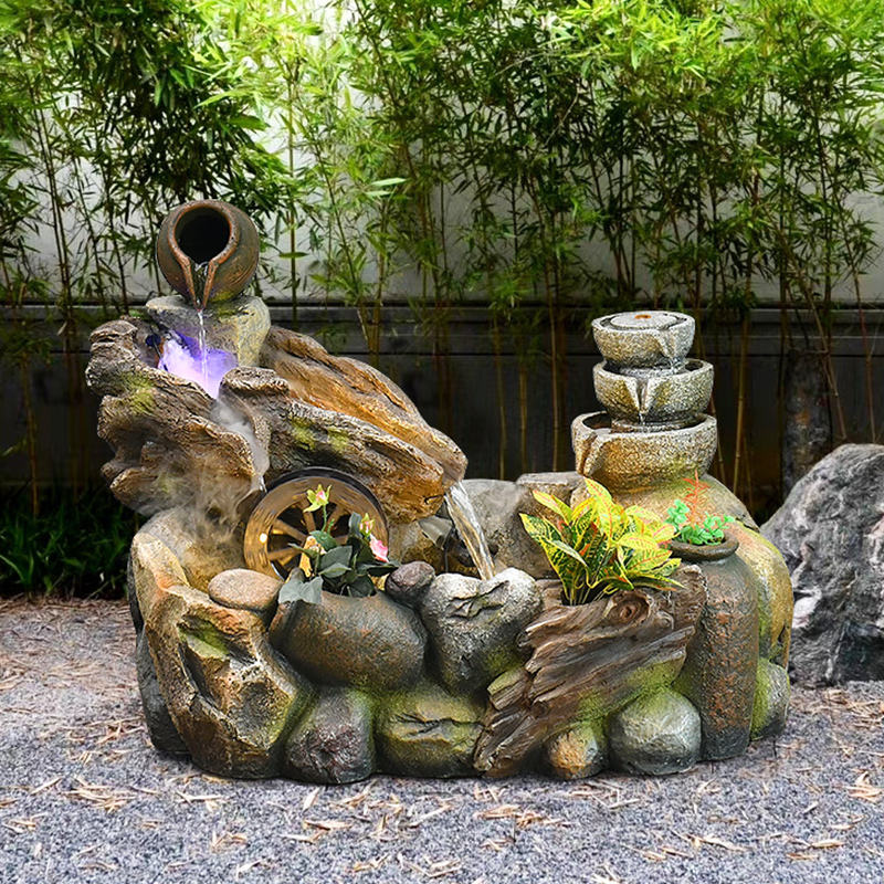 Fontaine de rochers en forme de roue de Feng Shui chinoise, ornement durable en fibre de verre, bassin à poissons pour balcon, terrasse, décoration paysagère