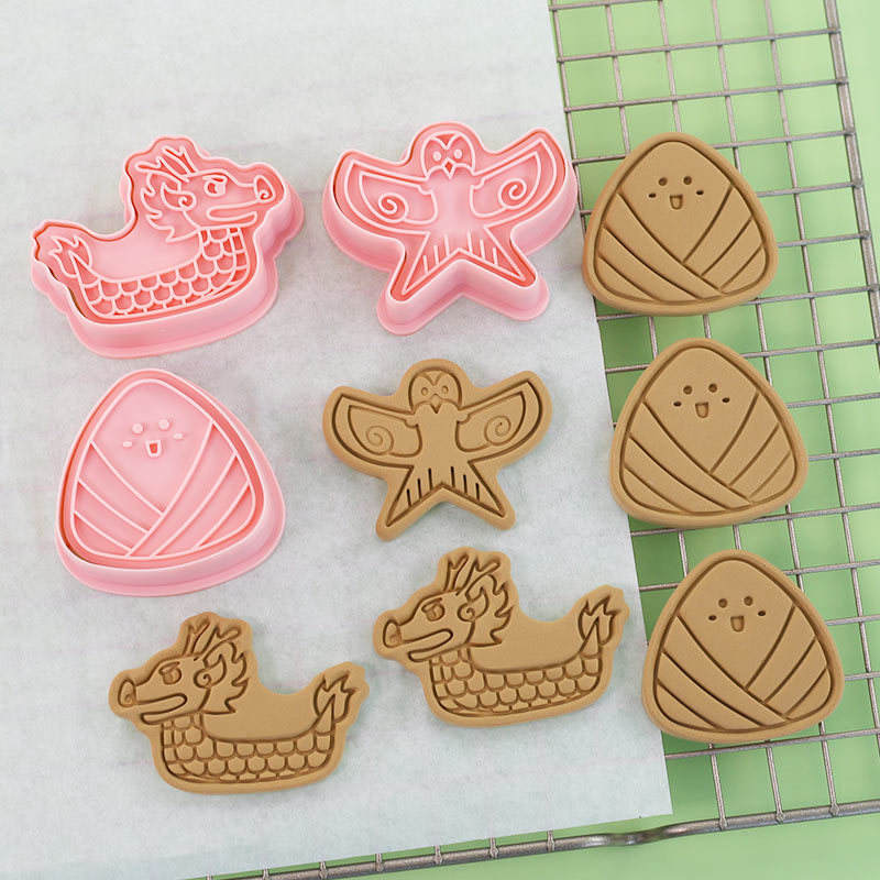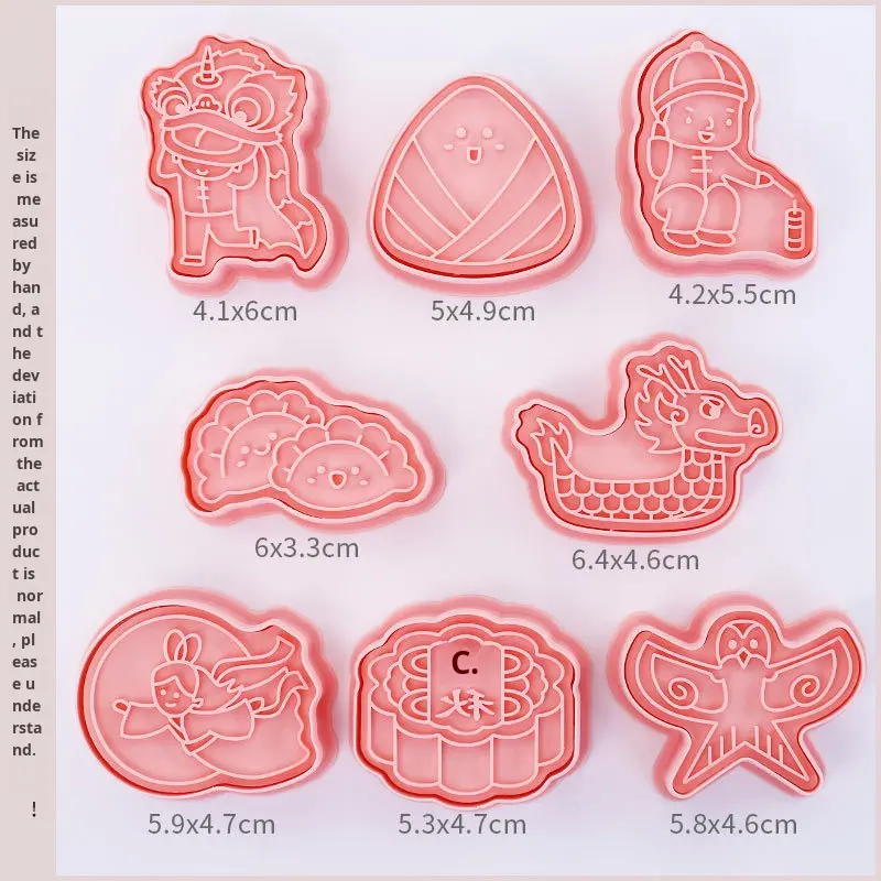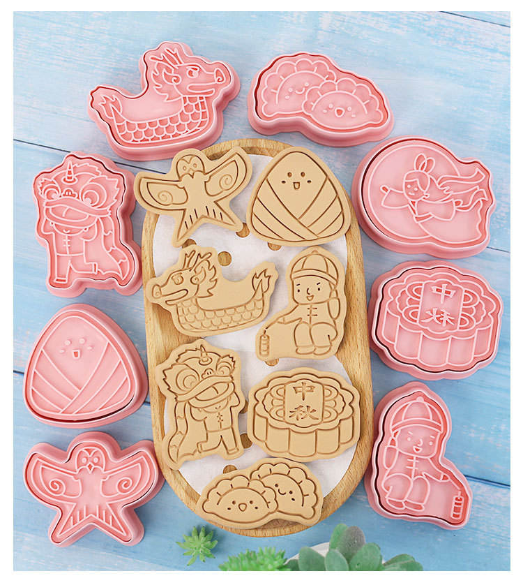 Emporte-pièces en plastique pour gâteaux de la mi-automne, du Nouvel An et du Festival des bateaux-dragons, motifs de dessins animés pour les fêtes chinoises, outil de pâtisserie pour fondant
