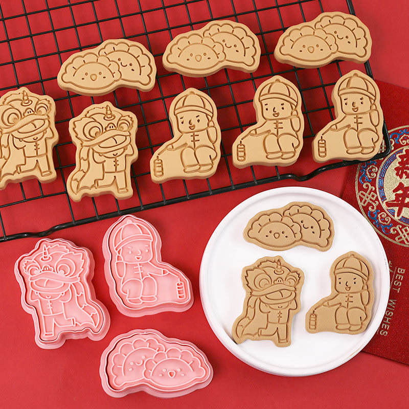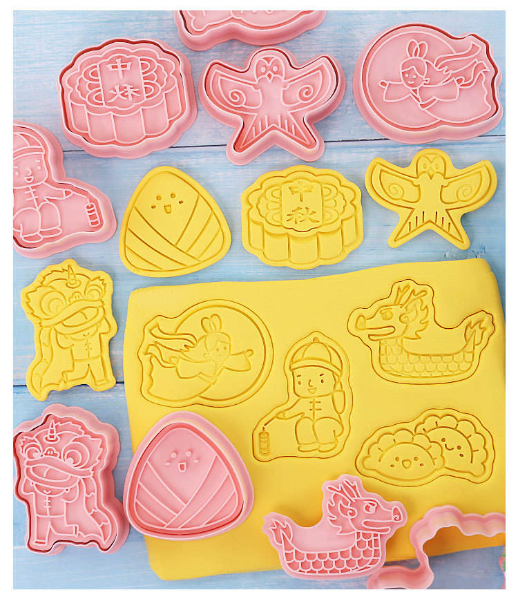 Moule à biscuits en plastique, motif dessin animé, thème des fêtes chinoises