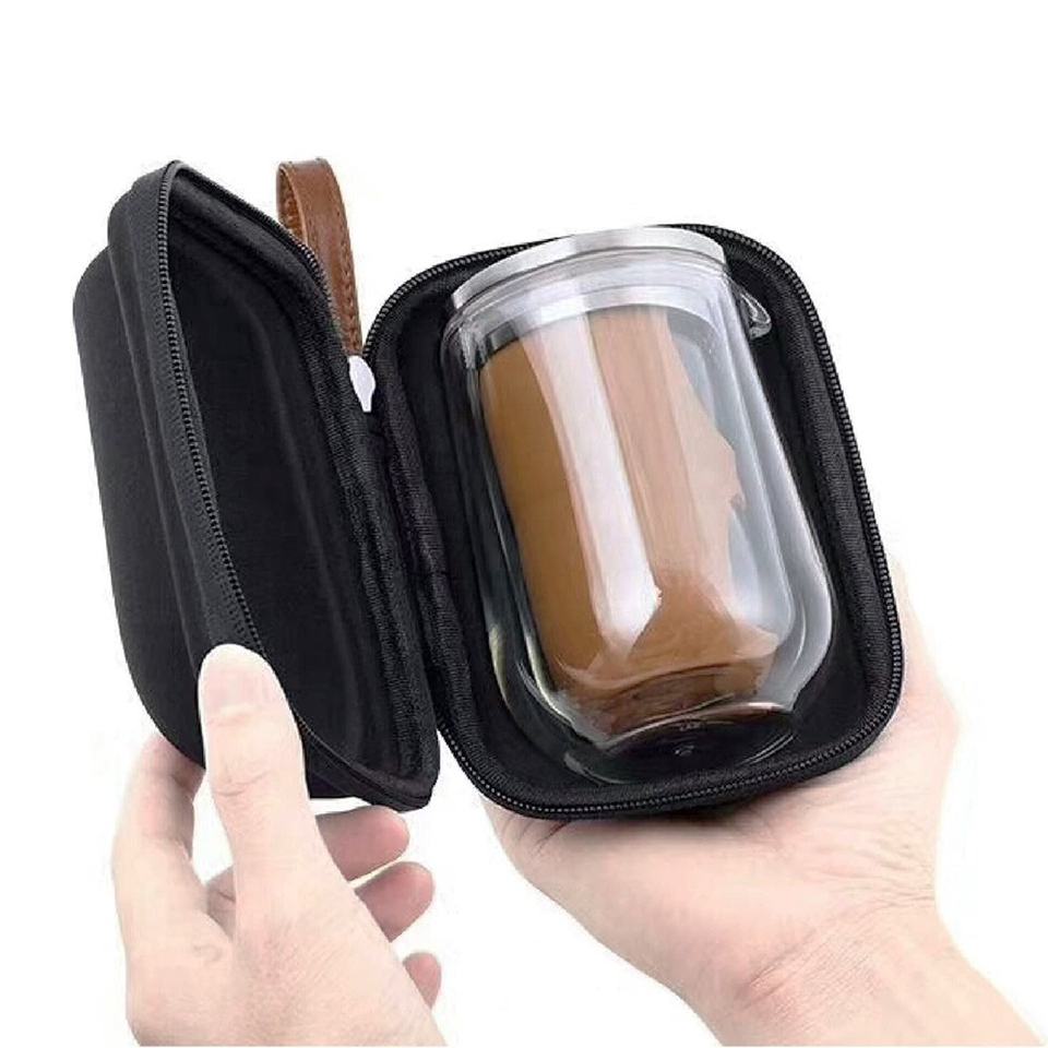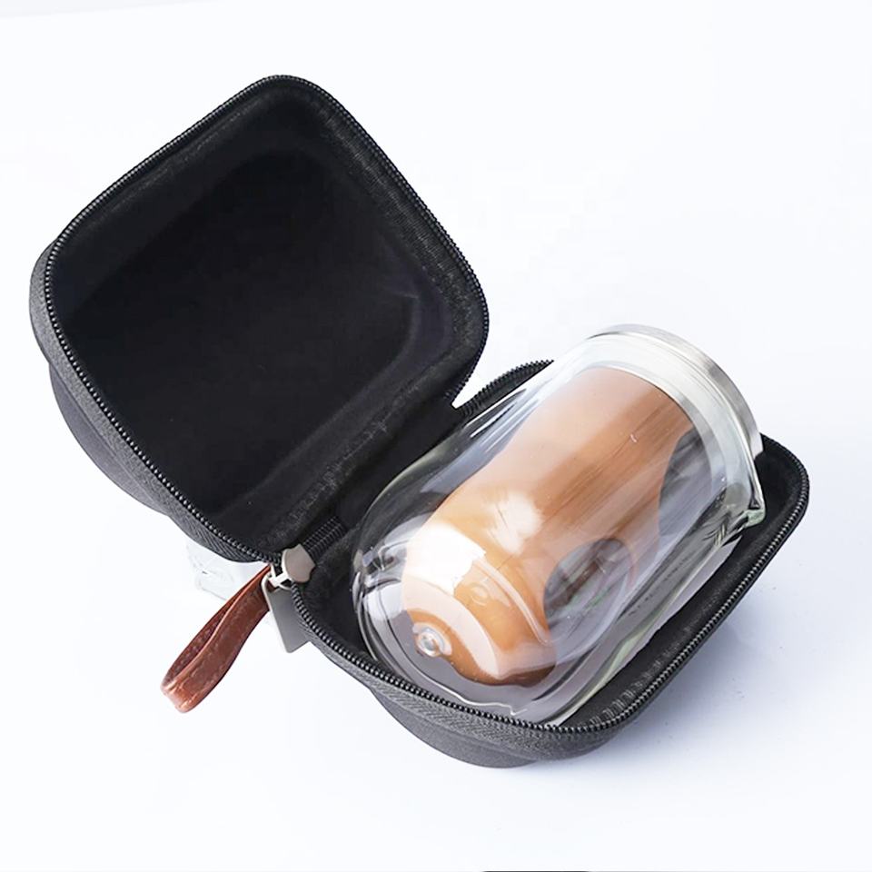 Bouteille de thé chinoise Gongfu et pot ensemble de thé de voyage de véhicule extérieur théière en verre Borosilicate Portable avec étui cadeau-étui uniquement