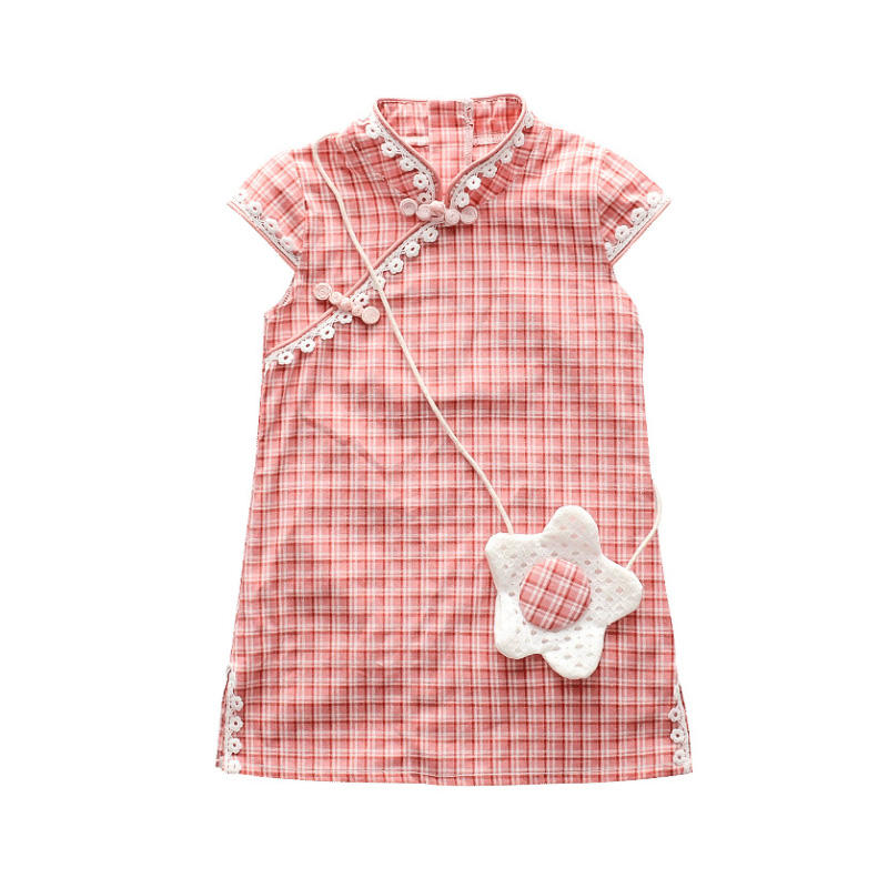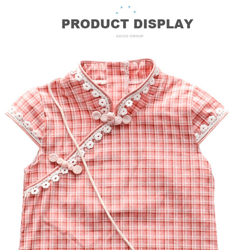 Robe d'été à carreaux à manches courtes de style Han chinois pour filles, Cheongsam