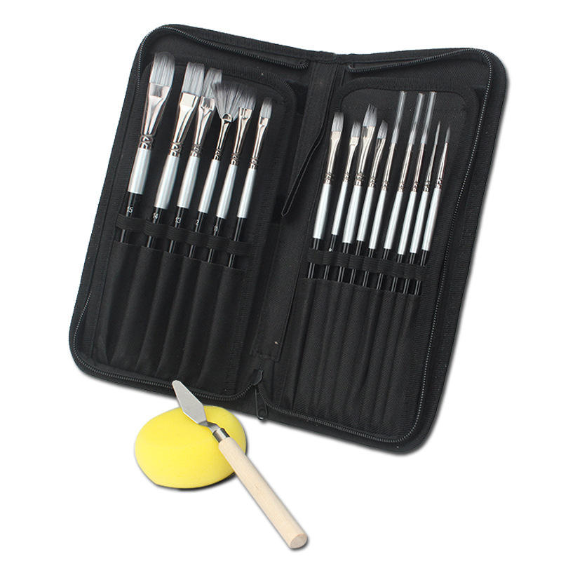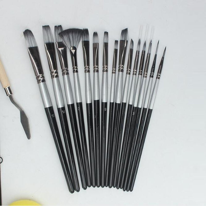 Pinceaux de peinture d'artiste de haute qualité chinois, 15 pièces, formes différentes, pinceaux pour aquarelle, acrylique, peinture à l'huile, avec mousse et étui