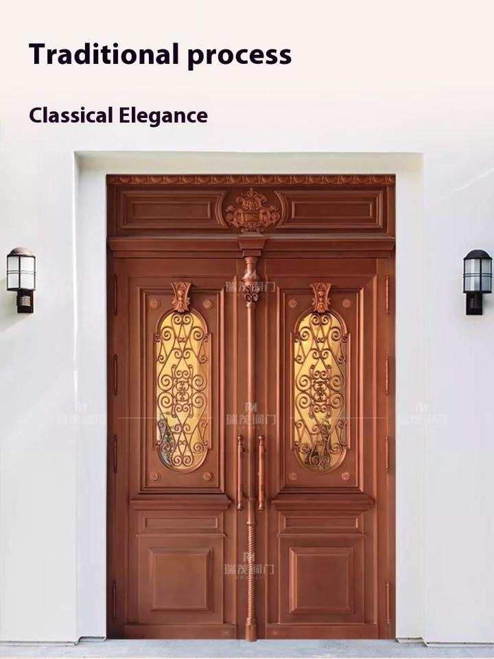 Porte d'entrée de maison de luxe en cuivre