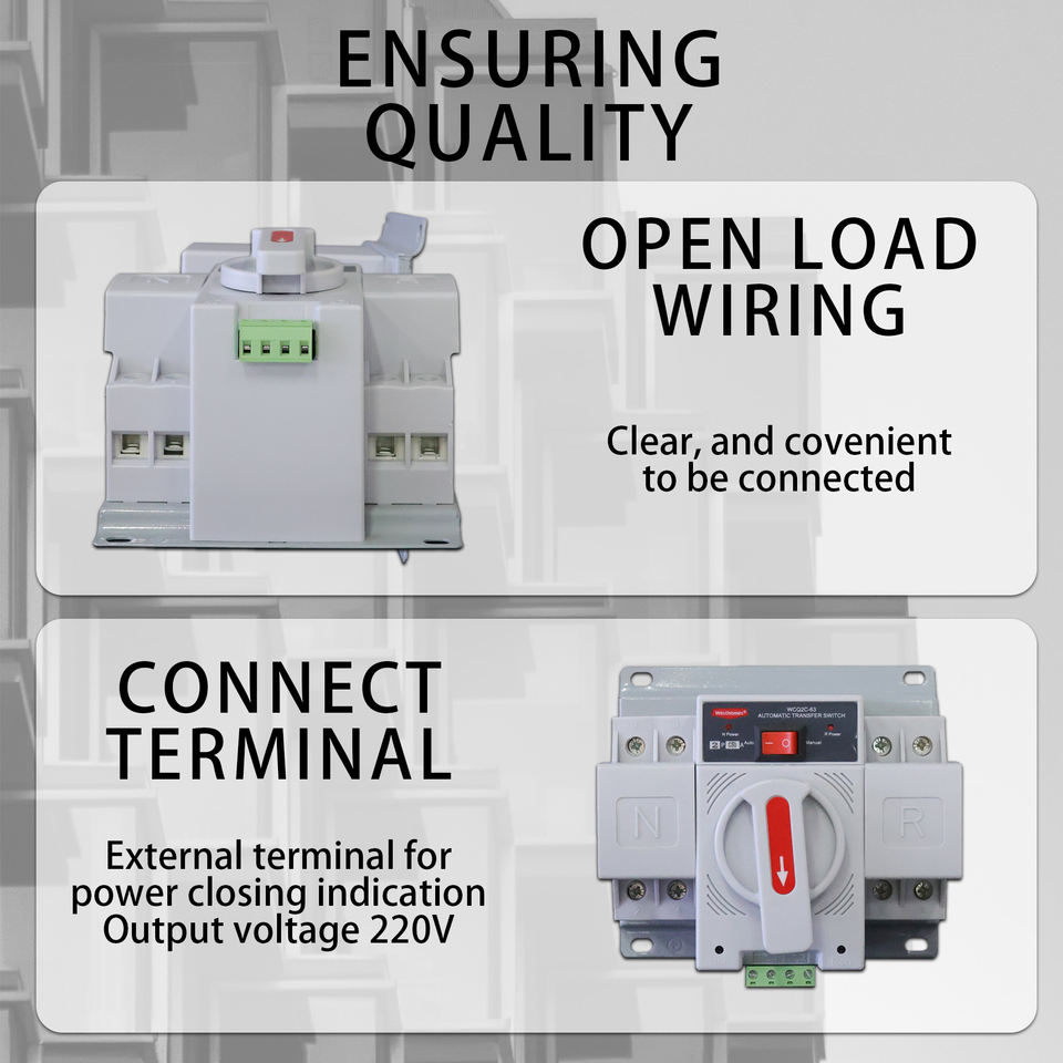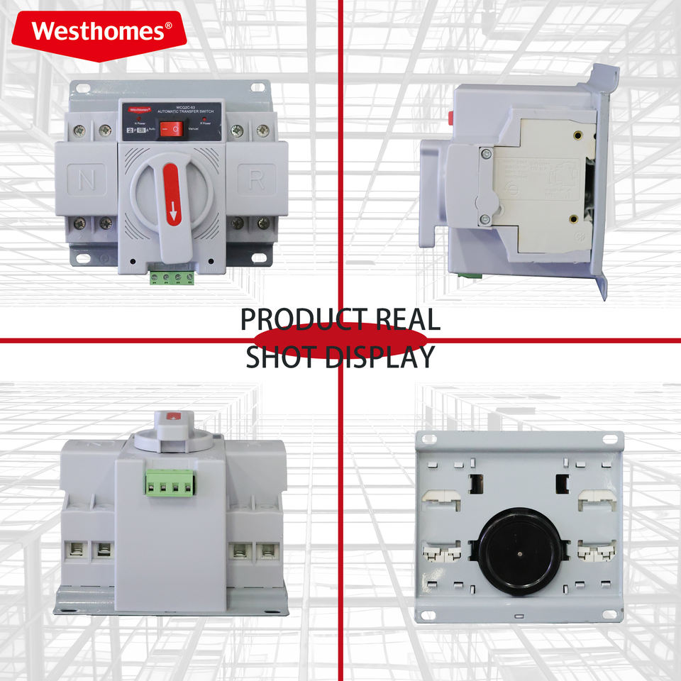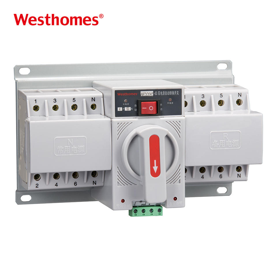 Commutateur de transfert automatique à double alimentation WCQ2C 6A 63A 2P/3P/4P de type PC pour systèmes solaires et alimentation de secours, fabriqué en Chine