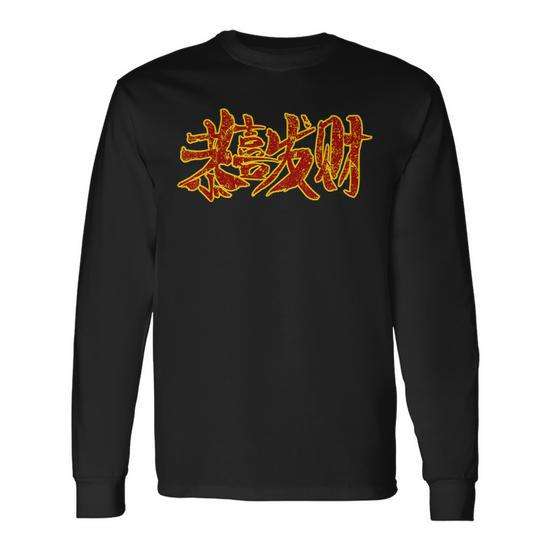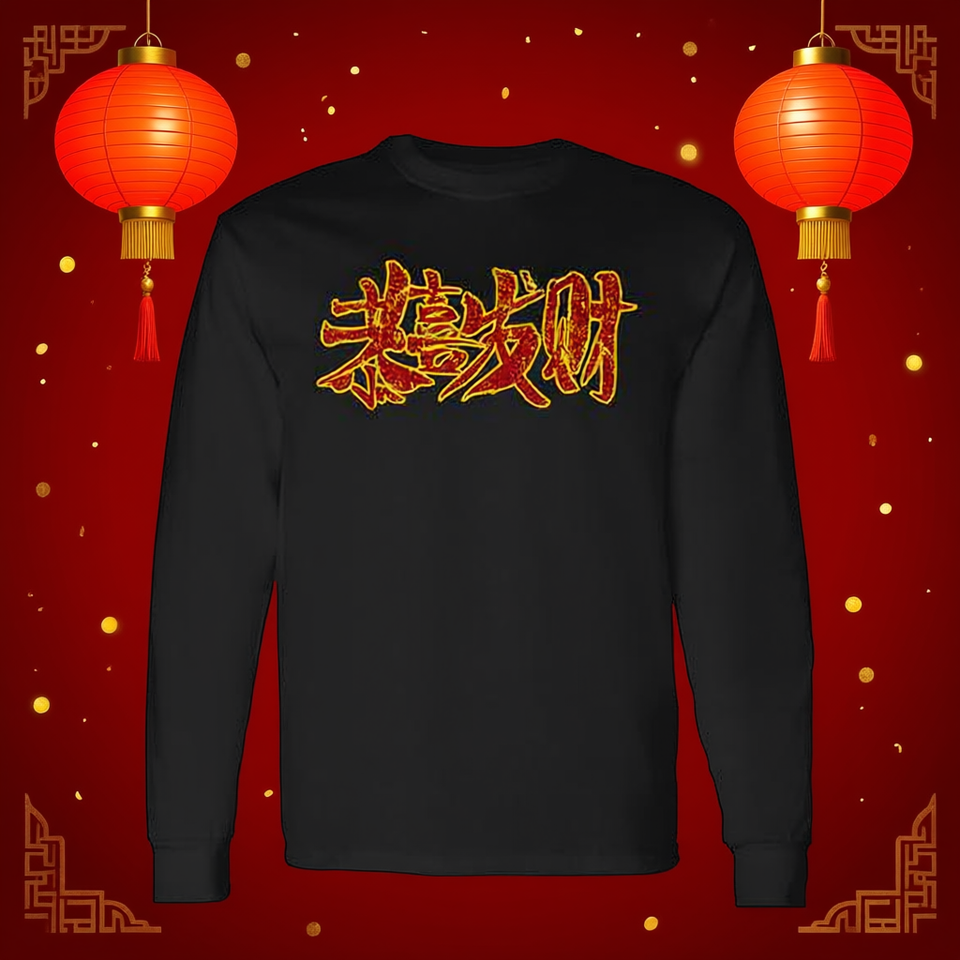 T-shirt à manches longues avec calligraphie du Nouvel An chinois, col rond moderne, taille adulte petite