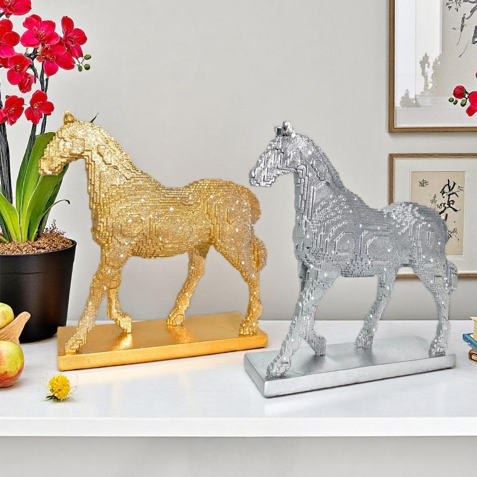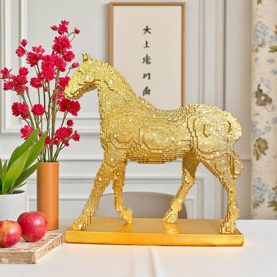 Chinese New Year Horse Epoxy Resin Artistic Building Block Walking Statue Ornament Light Luxury High-End Home Crafts Decoration