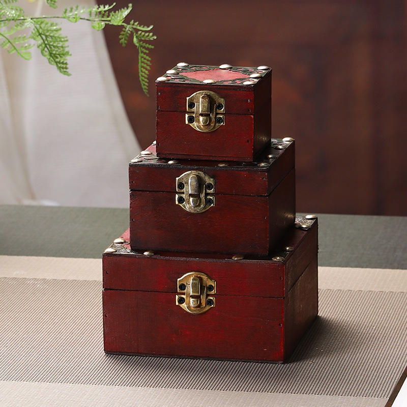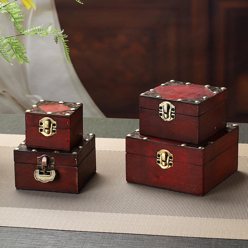 Boîte à bijoux en bois de style rétro chinois, mini boîte de rangement avec fermoir métallique pour bague, collier, emballage cadeau, accessoire de photographie