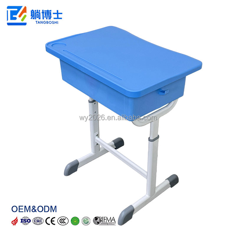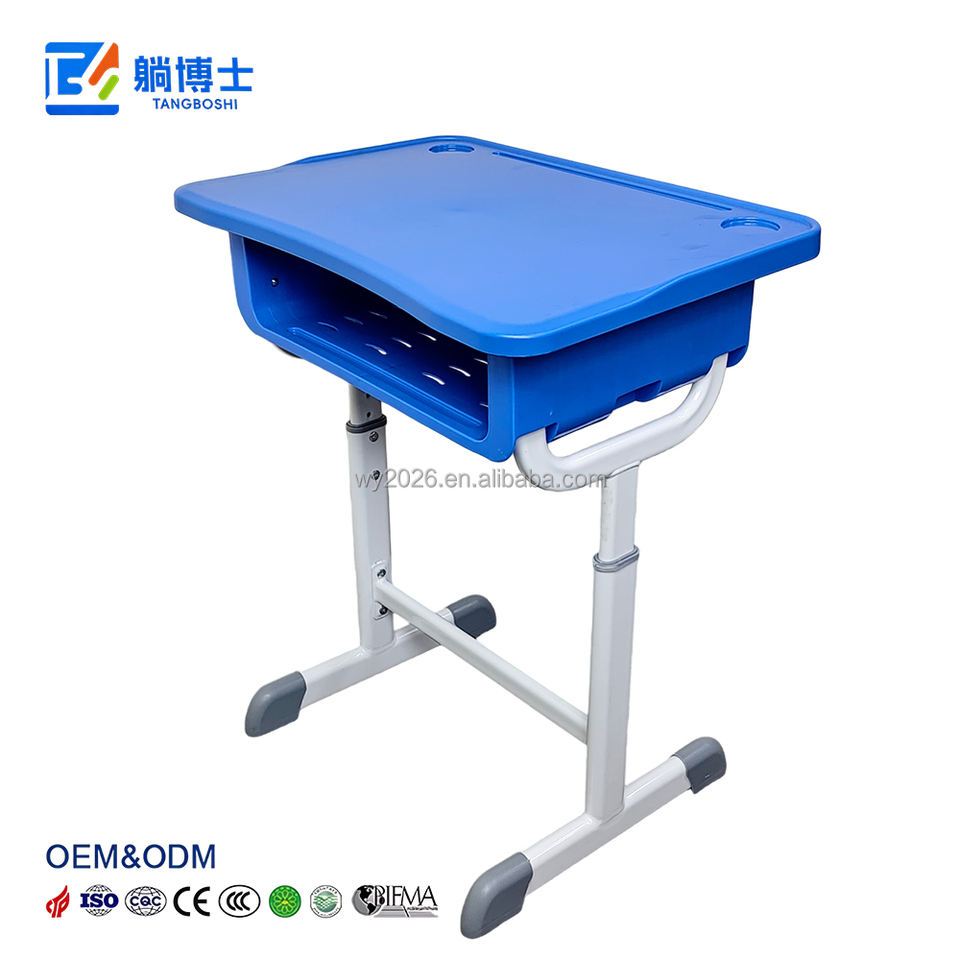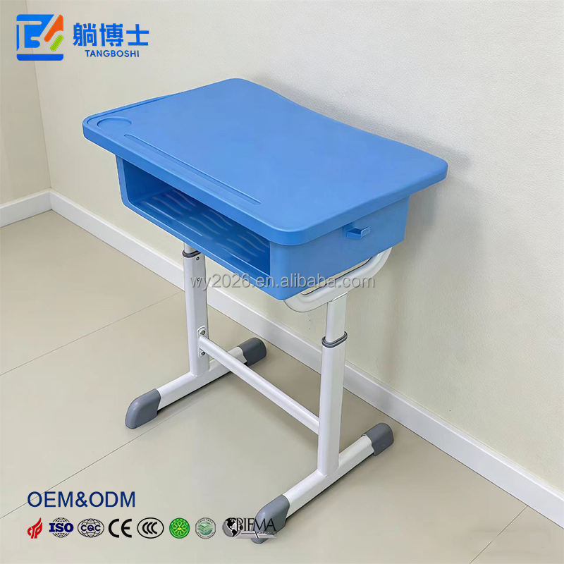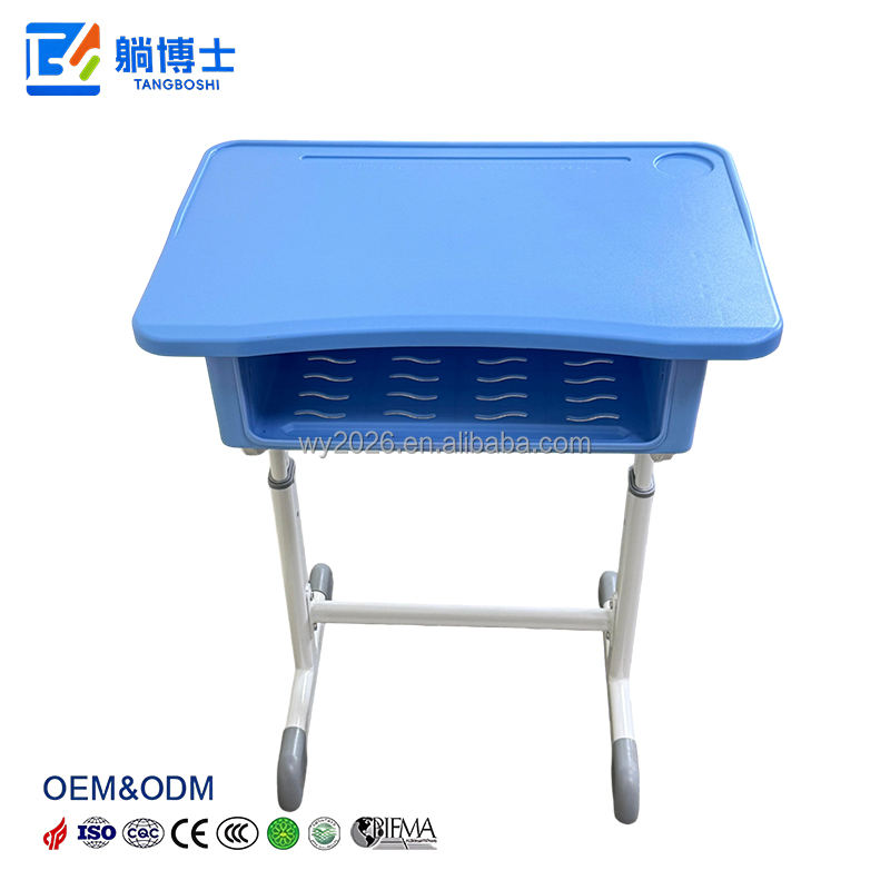 Usine chinoise de pupitres scolaires : Pupitres scolaires réputés à tube métallique réglable à simple piétement, avec tiroir de rangement et crochet