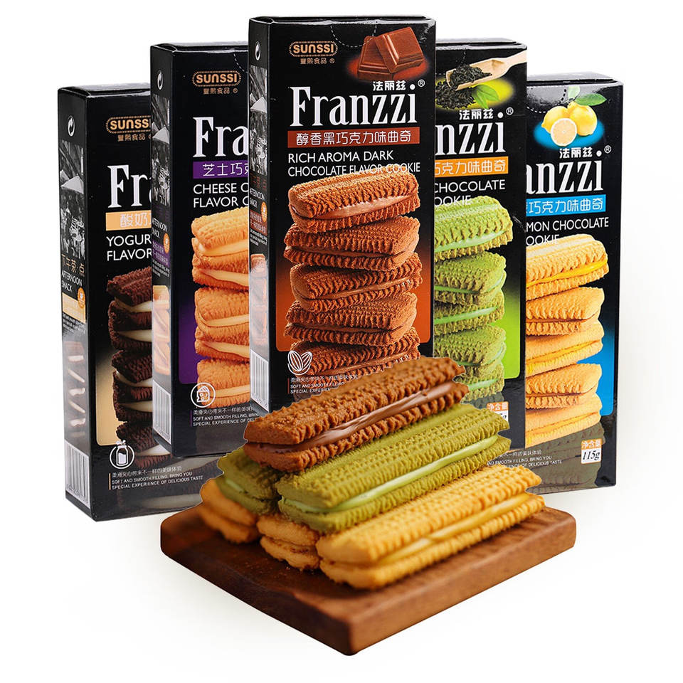 Chinese Snack Franzzi Cookies 115g Vanilla Lemon Chocolate Flavored Sandwich Falitz Cookies Biscuit