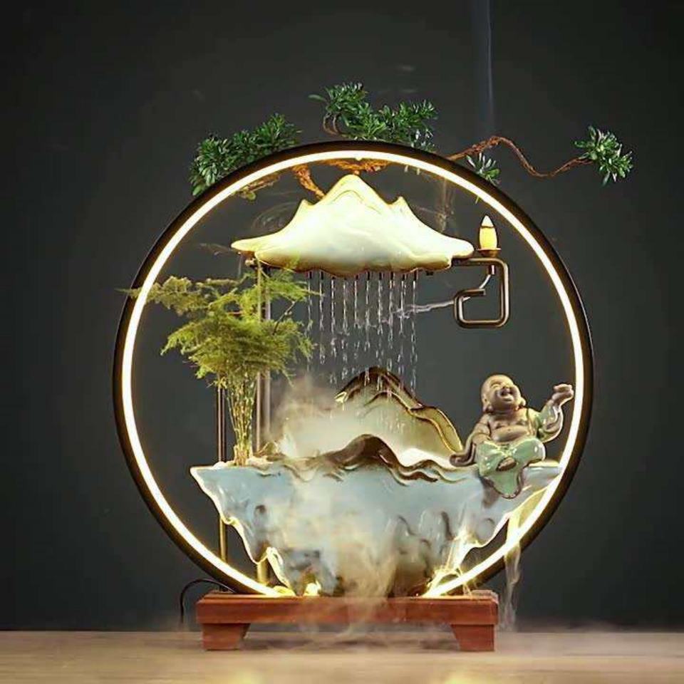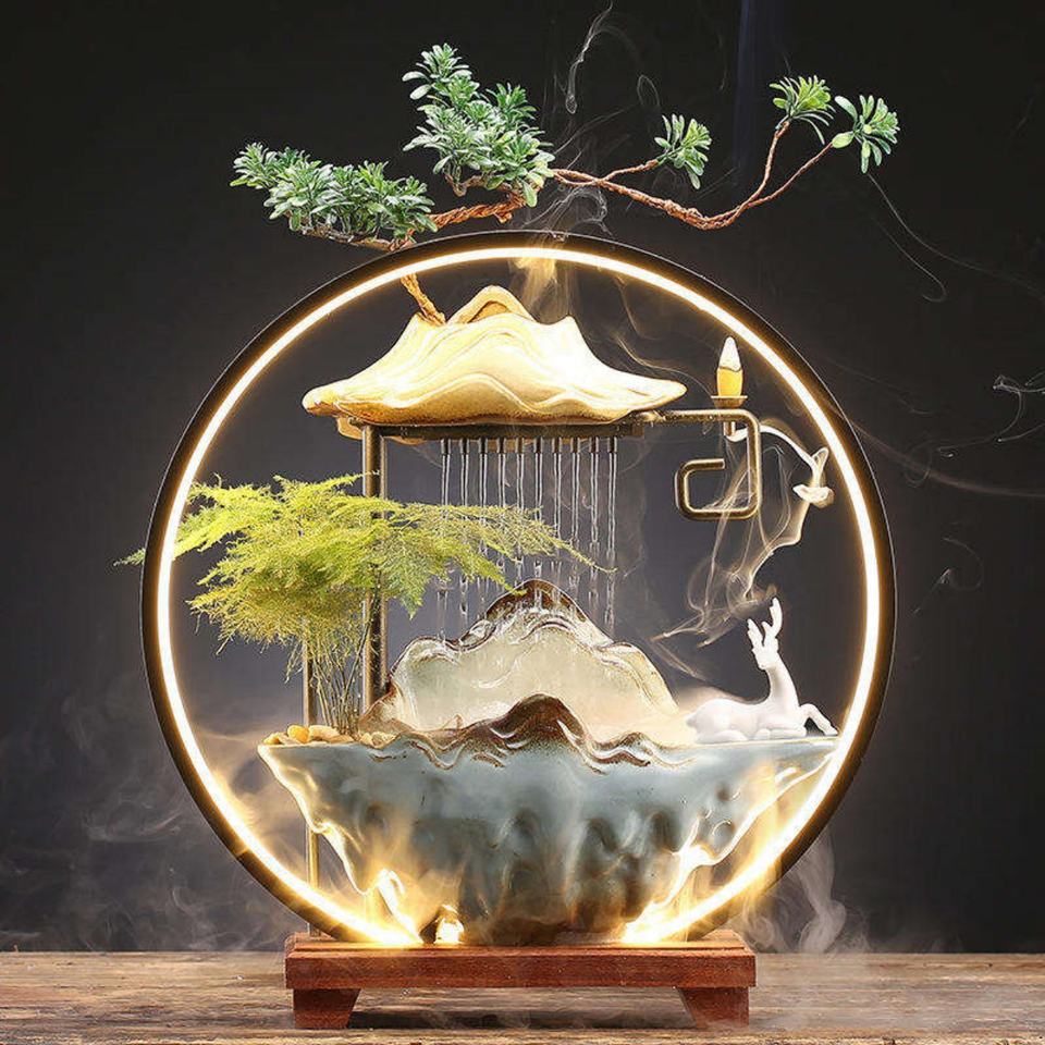 Brûleur d'encens en céramique de style chinois, mini fontaine d'eau de table avec lumière, décoration Feng Shui pour la maison et le bureau