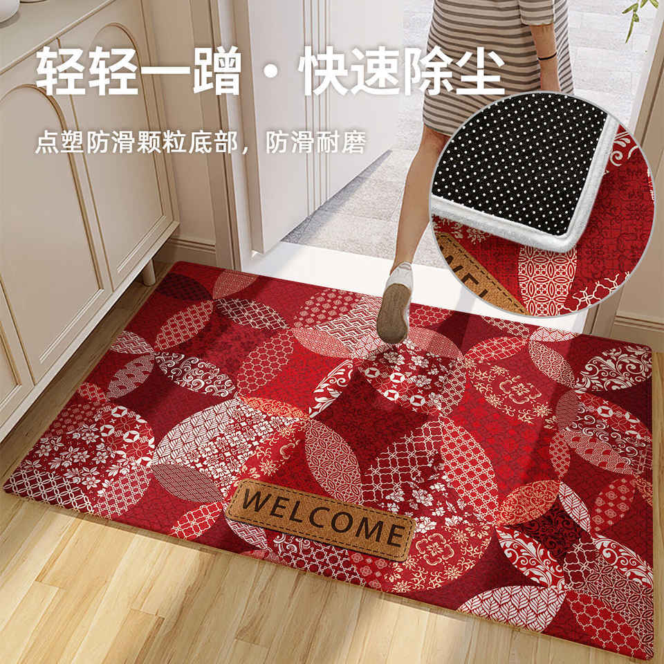 Part Number:Entrance - Belgian velvet - Crimson pattern for welcoming good fortune