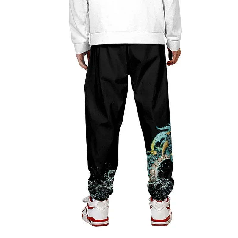 Style chinois Dragon imprimé Kung Fu sarouel vietnamien japonais lavé hommes décontracté 100% coton mode sport Streetwear