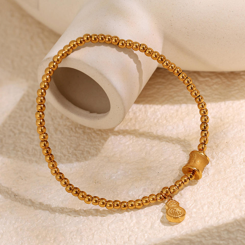 Bracelet en acier titane plaqué or de style chinois avec breloque en pierre naturelle pour femme, bijoux cadeau