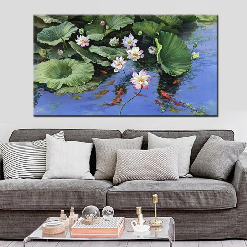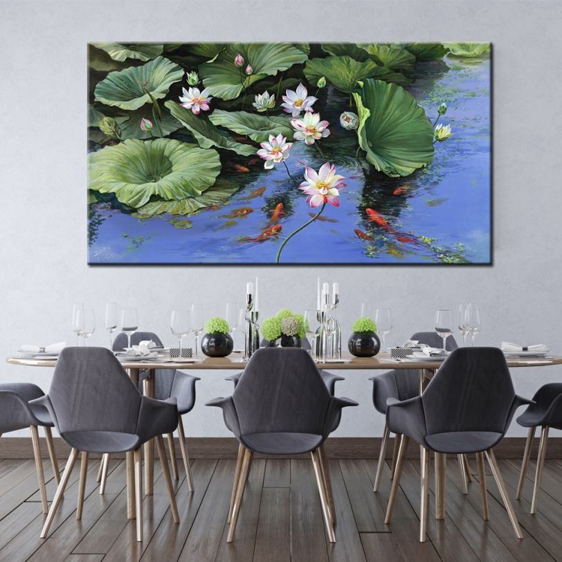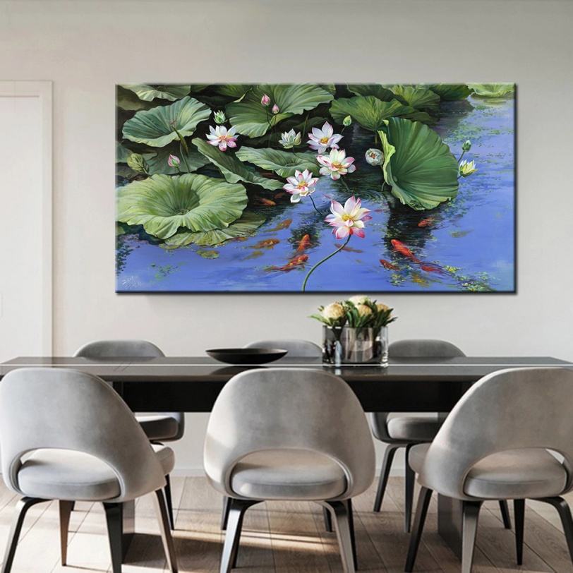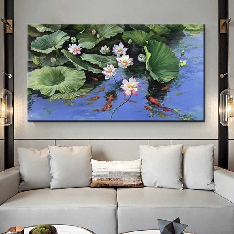 Peinture à l'huile sur toile de style chinois, fleur de lotus peinte à la main, pour décoration murale