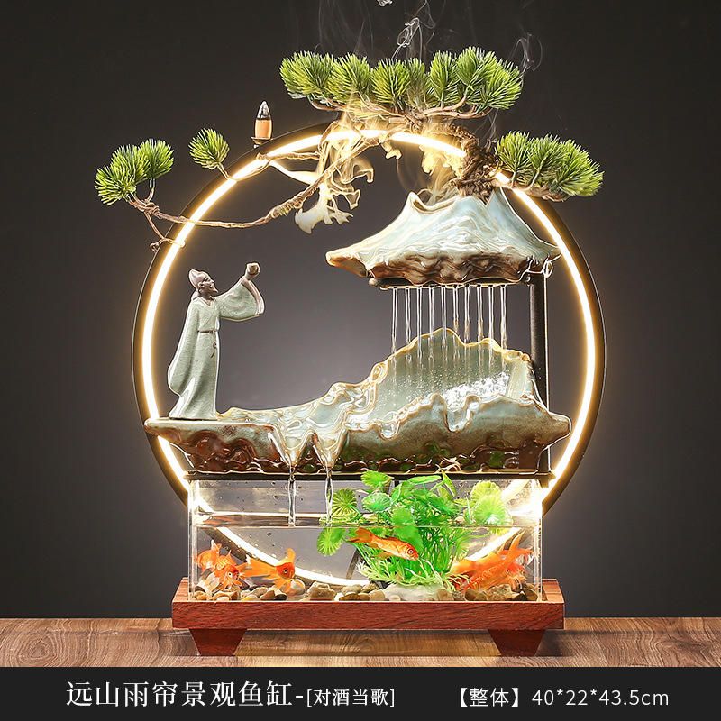Style chinois Money Flow LEDOrnaments Creative Circulation Eau Fish Tank Maison Salon Bureau Bureau Ouverture Cadeaux