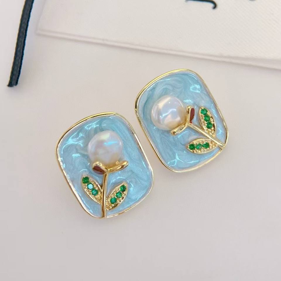 Boucles d'oreilles en perles baroques d'eau douce de style chinois rétro, peinture à l'huile, tempérament simple avec une beauté naturelle