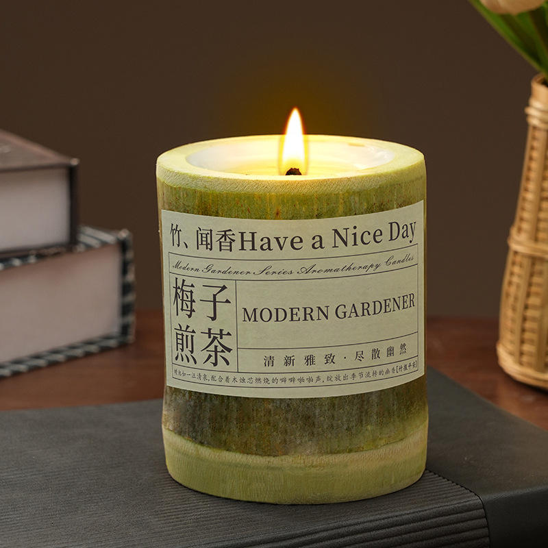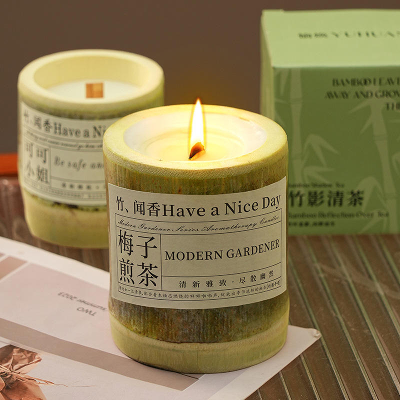 Bougie parfumée de style chinois, créative, en tube de bambou, en cire de soja, dans un bocal, pour créer une ambiance, accompagnée d'un coffret cadeau, lumière de bougie