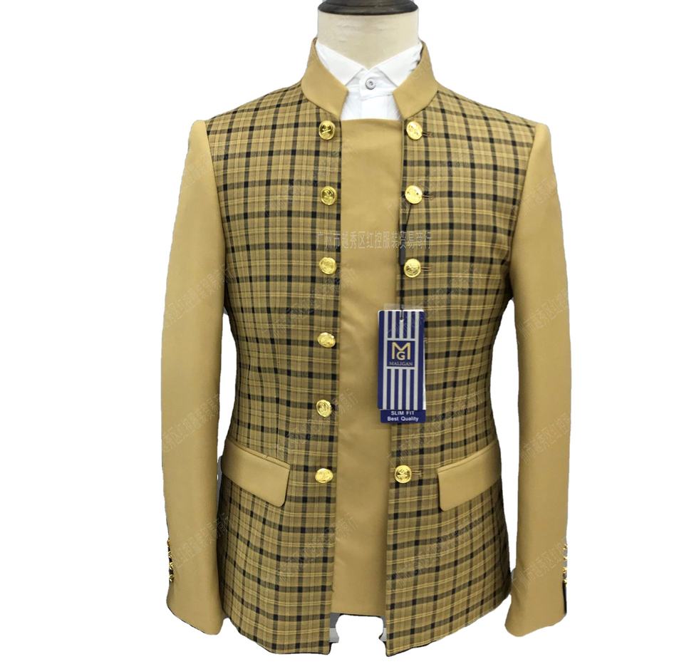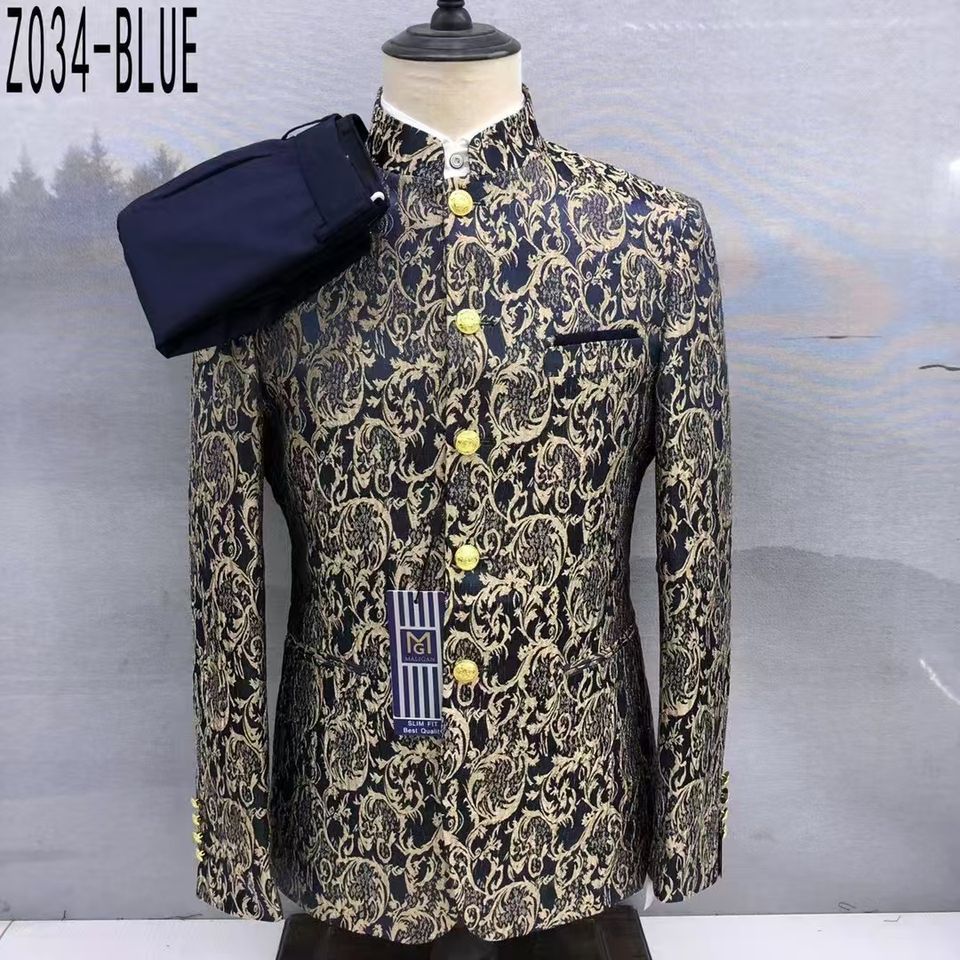 Costume Tang de style chinois pour homme, tenue de performance, robe de mariage, tunique à col montant pour homme